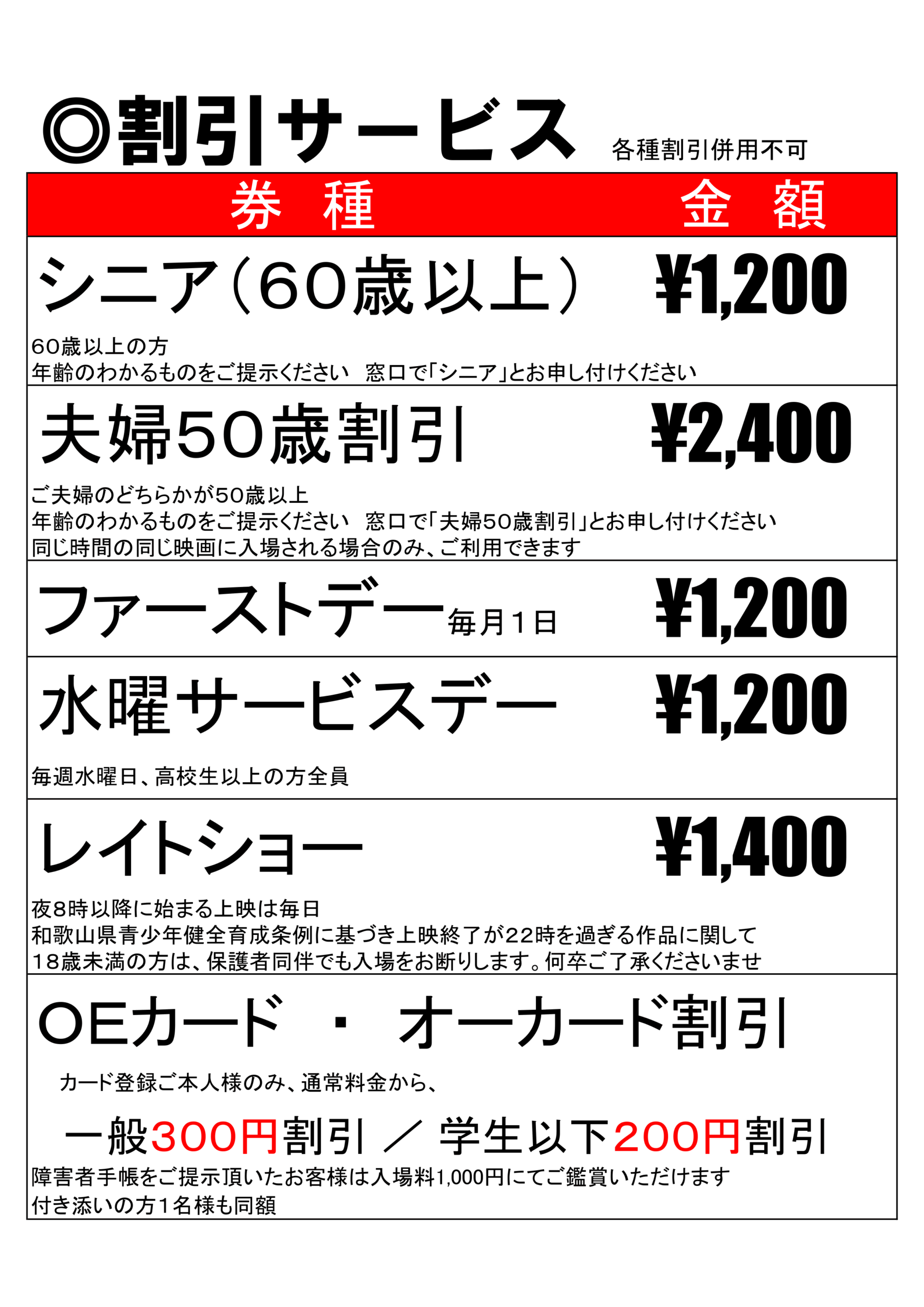 ジストシネマ田辺店 サービス料金